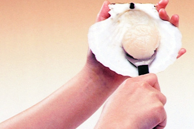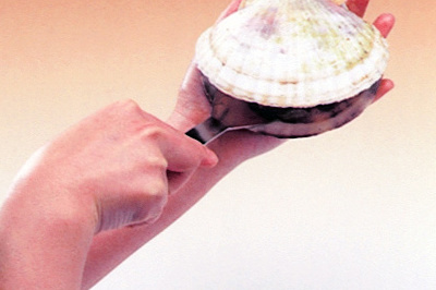 ※手を切らないために、軍手をするか、タオル等で貝を挟んで持つことをお勧めします。